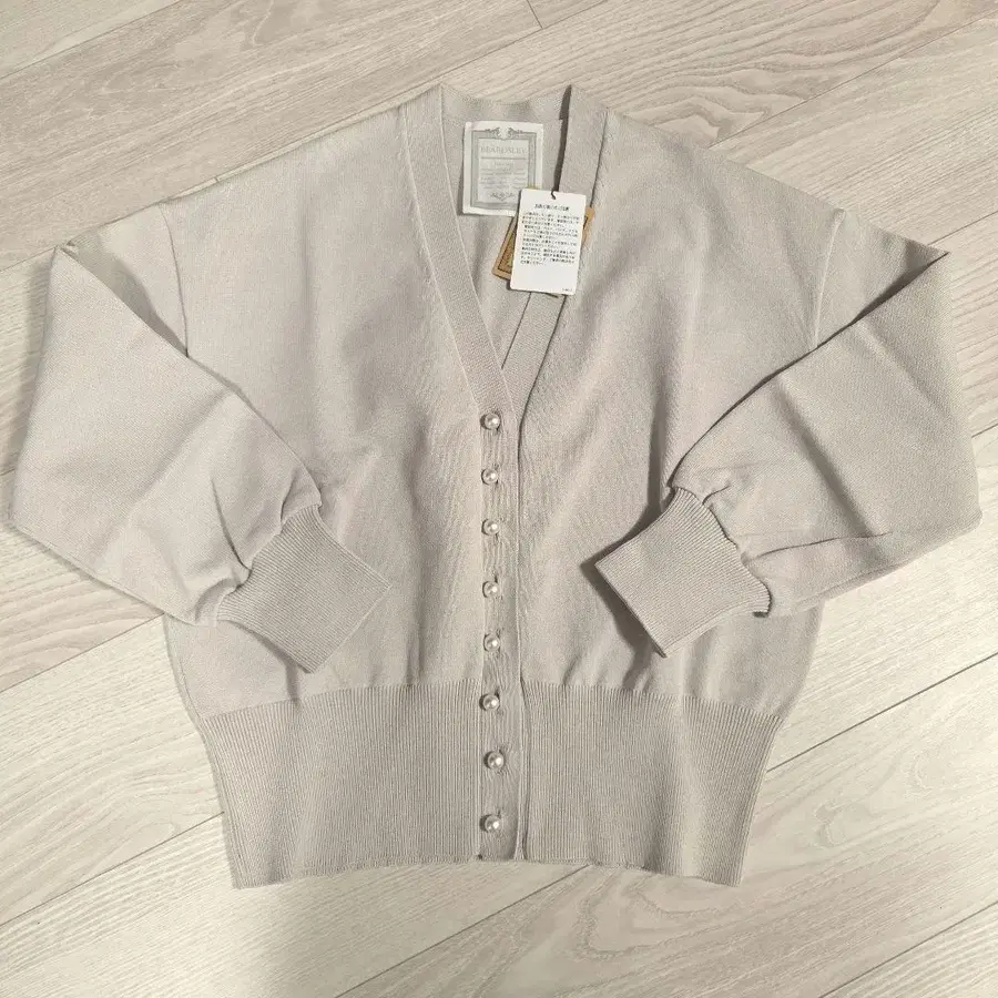 자동 번역되었어요. 원문보기V넥 디자인의 블랙 가디건, 펄 버튼이 특징.