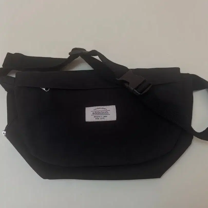 내구성 있는 나일론 소재의 심플한 블랙 웨스트 파우치 백.