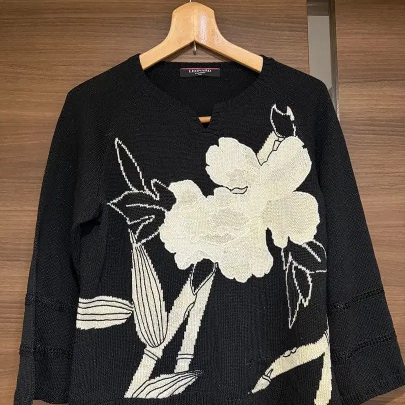 레오나르 LEONARD 꽃무늬 풀오버 다크 네이비 니트 절개 고급 상의