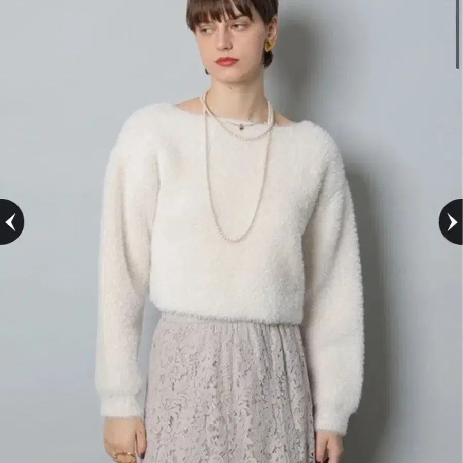 미사용 새상품 evelyn 쉬폰 프릴 니트 화이트