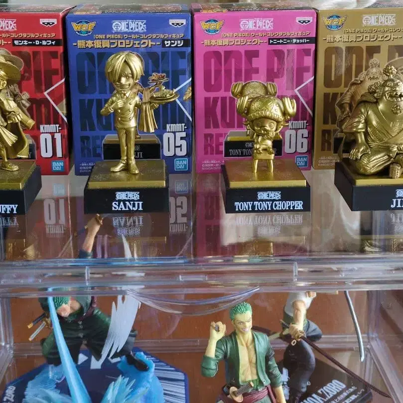 ONE PIECE의 인기 캐릭터들을 골드 컬러로 재현한 동상 세트.