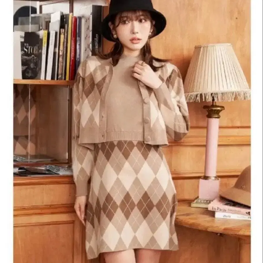Darich 다리치 아가일 체크 니트 앙상블 색상 모카 18,700엔 1회 착용, 컨디션 최상 가격 인하 불가