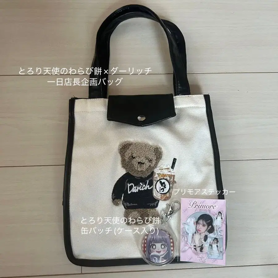 토로리 천사의 와라비모치 x 다리치 백, 토로리 천사의 와라비모치 콜라보 캔 배지 (케이스 포함), 프리모아 스티커