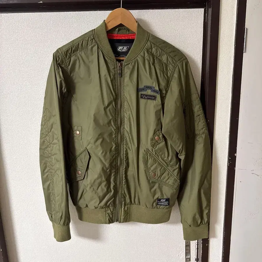 MA-1 스타일 올리브 그린 자켓, 지퍼 포켓 부착. - 브랜드: FIFTYFIVESL - 디자인: MA-1 스타일 - 색상: 올리브 그린 - 특징: 지퍼 포켓 - 소재: 나일론 방문해 주셔서 감사합니다. 사이즈 - M