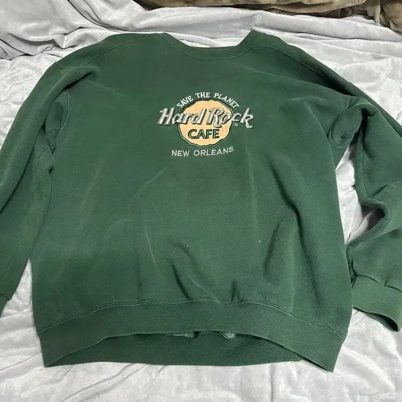 Hard Rock Cafe의 그린 색상 로고 맨투맨.