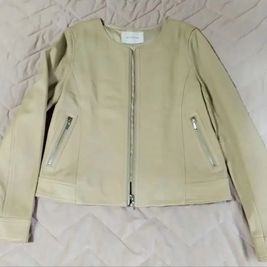 자동 번역되었어요. 원문보기베이지 색상의 집업 가죽 자켓입니다. 심플하고 스타일리시한 디자인입니다.