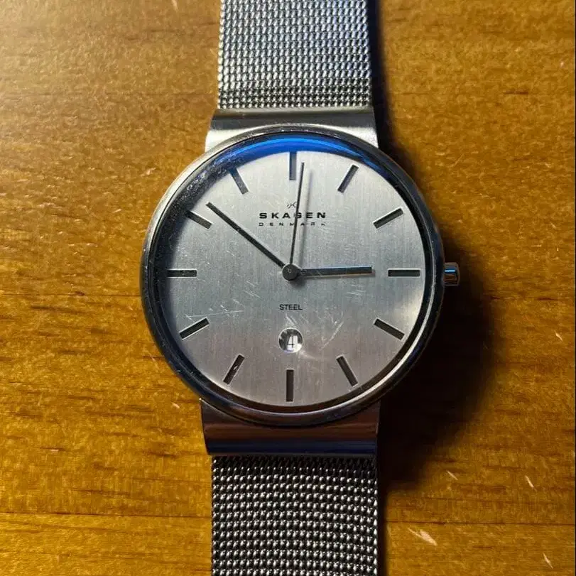 SKAGEN 손목시계 스테인리스 - 브랜드: SKAGEN - 색상: 실버 - 밴드 타입: 메쉬 밴딩 표면에 미세한 흠집이 있습니다. 배터리가 들어 있어 바로 사용하실 수 있습니다. 중고품임을 이해해 주시는 분의 검토 잘 부탁드립니다.