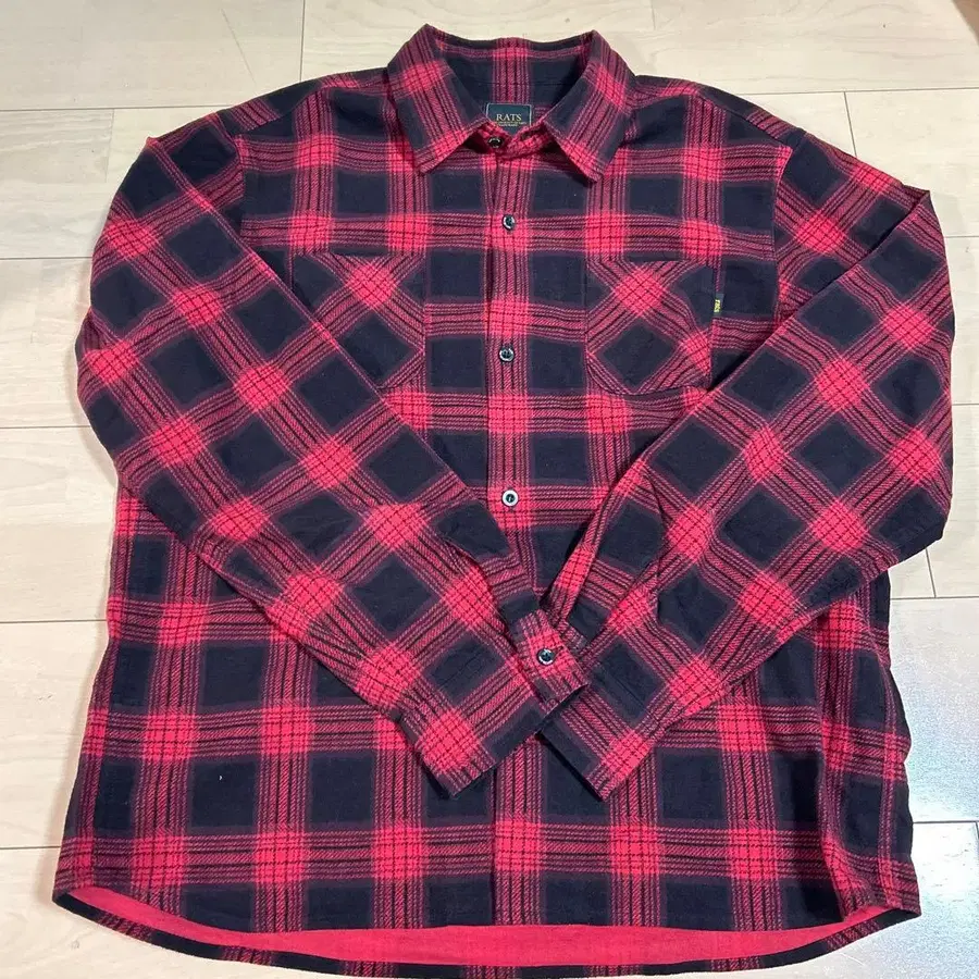 RATS 긴팔 셔츠 L 레드/블랙 체크