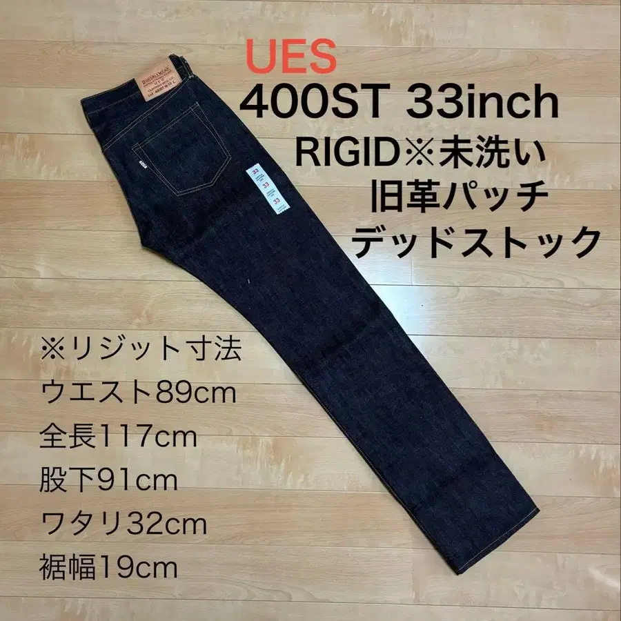 리ジ드 데님 UES 400ST, 사이즈 33인치, 구형 가죽 패치 포함으로 내구성 탁월. - 모델: UES 400ST - 사이즈: 33인치 - 허리: 89cm - 전체 길이: 117cm - 인심: 91cm - 허벅지: 32cm - 밑단 폭: 19cm - 소재: 리지드 데님 - 특징: 구형 가죽 패치 방문해 주셔서 감사합니다. UES가 생 데님을 판매하던 시대의 제품입니다. 미사용 새상품, 미세탁 노리 상태입니다. ※ 세탁 시 허리, 길이 모두 약 -5cm 정도 줄어듭니다. 주의해 주십시오.