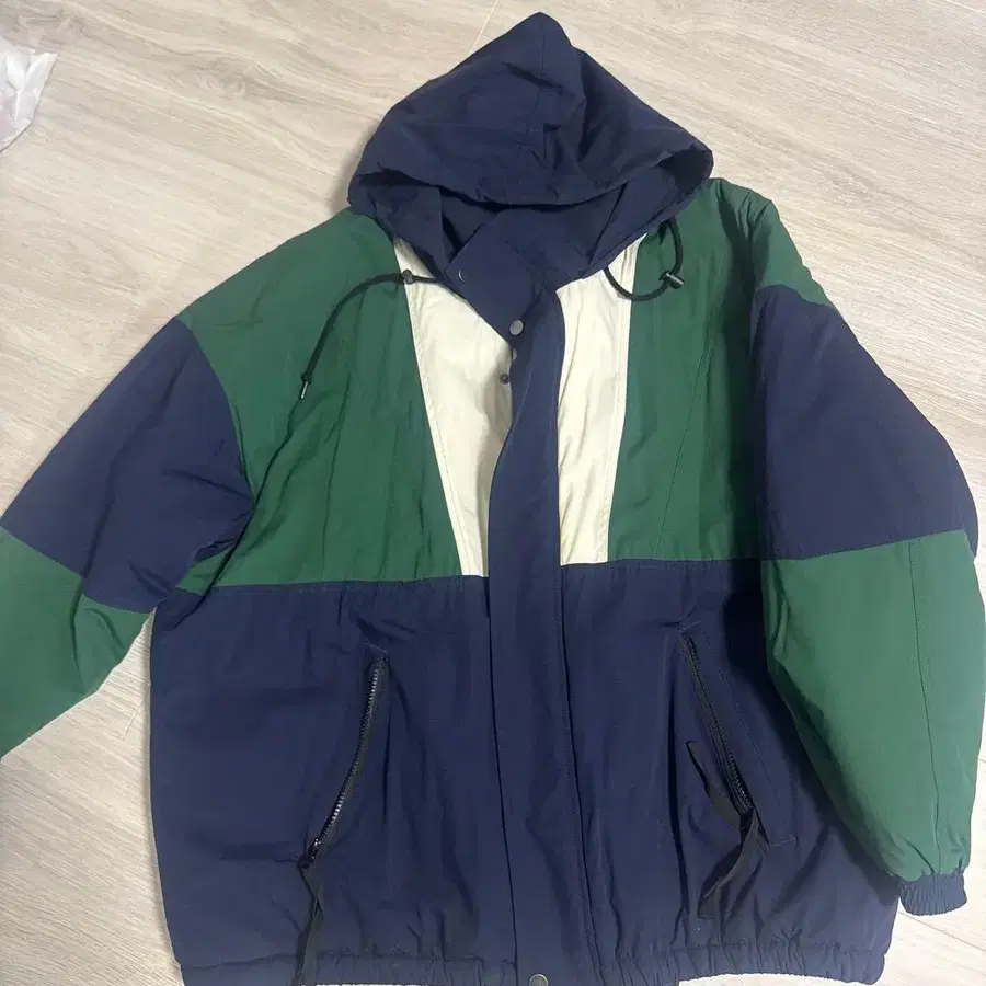후드 부착 나일론 자켓, 네이비와 그린 배색, L 사이즈. - 브랜드: BEAMS HEART - 색상: 네이비/그린/화이트 - 사이즈: L - 디자인: 후드 부착, 지퍼 포켓 - 소재: 나일론 방문해 주셔서 감사합니다.