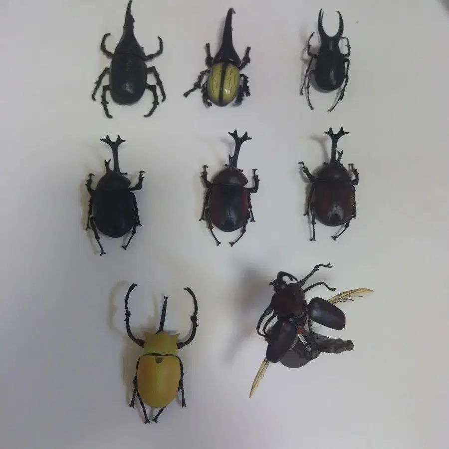 장수풍뎅이 여러 종류의 피규어 8개입니다.