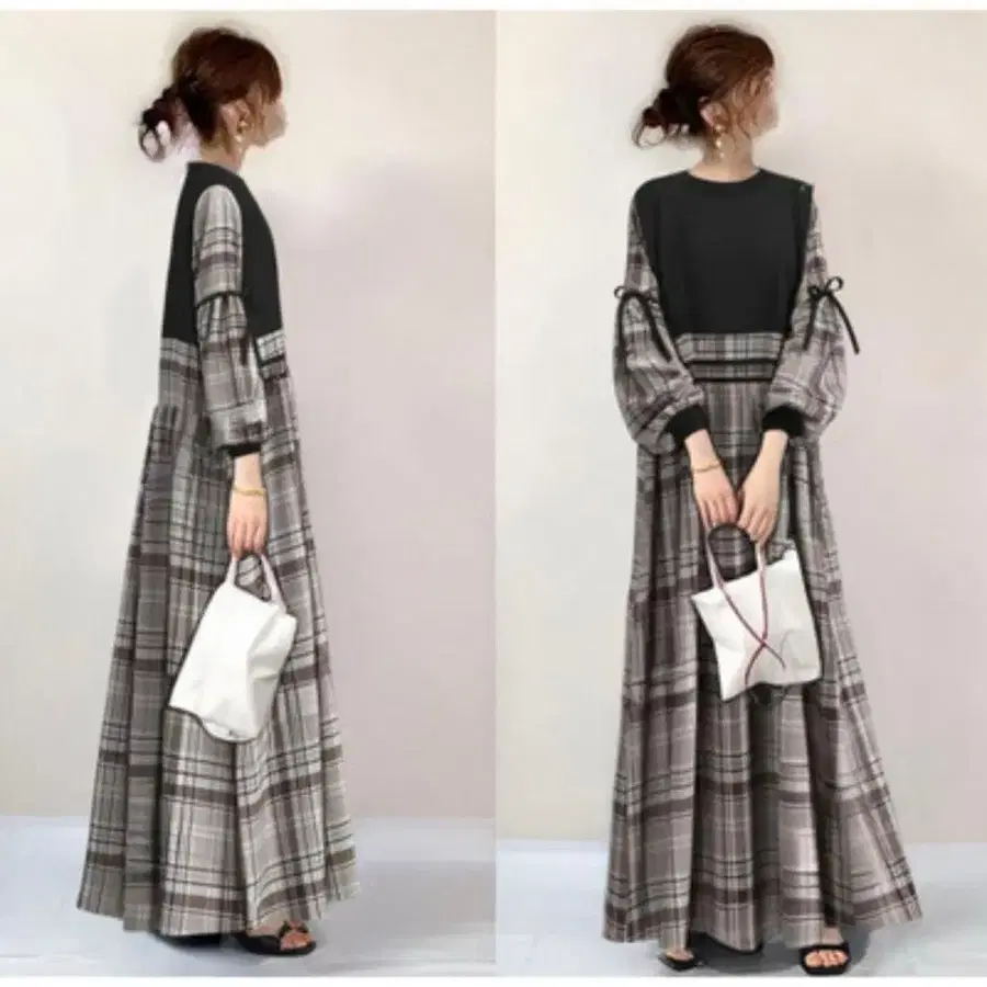 볼륨 소매가 귀여운 원피스입니다.