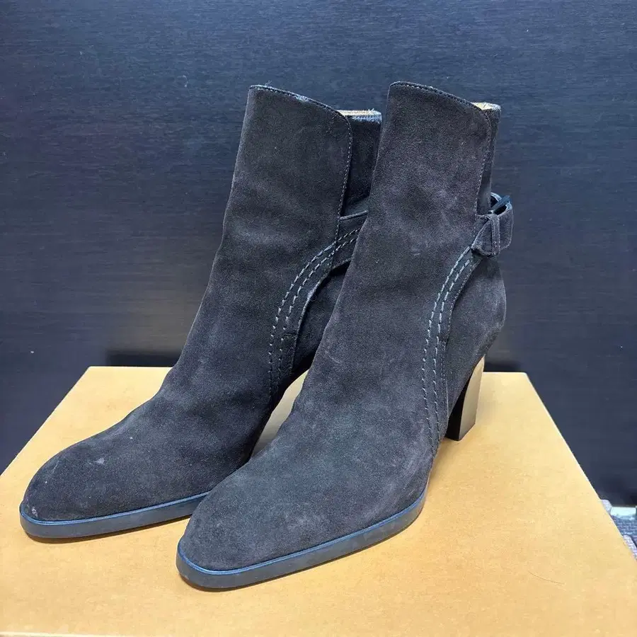 다크 브라운 스웨이드 소재로, 사이드 고어 디자인의 힐 부츠. - 색상: 다크 브라운 - 소재: 스웨이드 - 사이즈: 36 - 굽 높이: 약 8cm - 디자인: 사이드 고어 스타일 방문해 주셔서 감사합니다. 사이즈 - 25.5cm