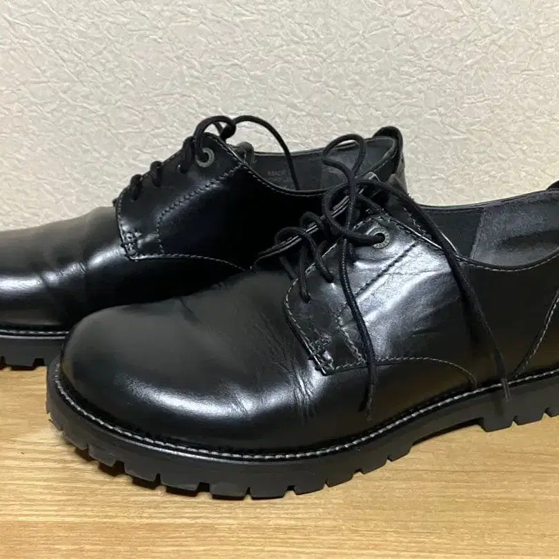 거의 미사용 [ ZARA ] 청키 가죽 신발 통굽 블랙 42