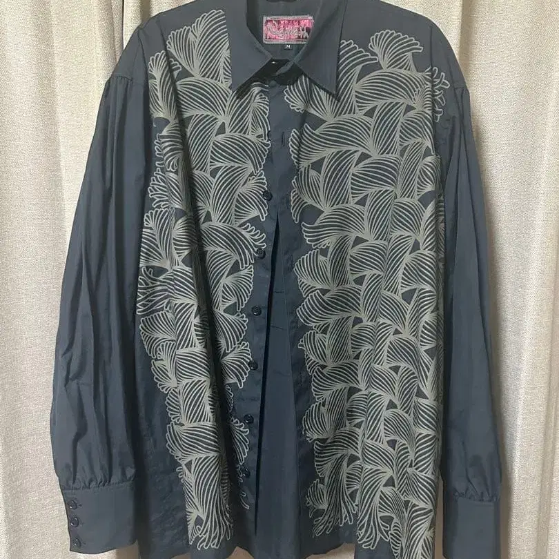 잎사귀 문양 자수가 들어간 블랙 긴팔 셔츠.