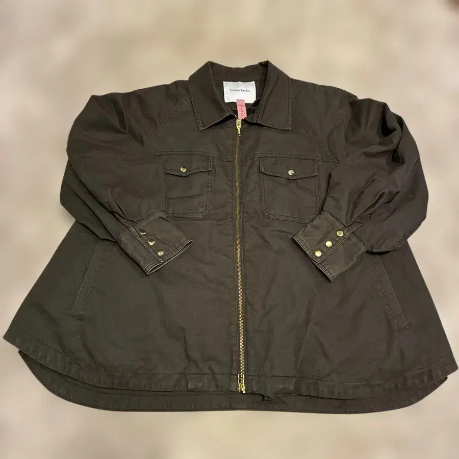 다크 브라운 색상의 Emma Taylor 밀리터리 자켓입니다. 플리스 안감이 부착되어 있어 보온성이 뛰어납니다.