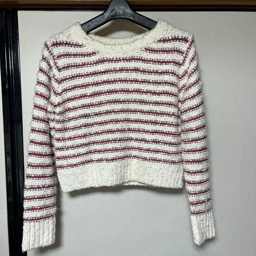 다즐린 dazzlin 화이트와 빨간색 스트라이프 크롭 니트 스웨터
