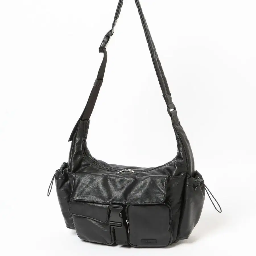 niko and - 합성 피혁 소재의 블랙 숄더백으로, 외부에 여러 개의 포켓이 있으며 조절 가능한 스트랩이 특징입니다.