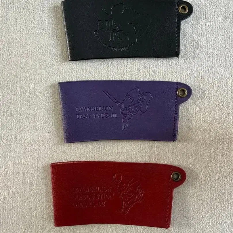 에반게리온 로고가 새겨진 가죽풍 포켓형 케이스, 블랙, 보라색, 빨간색 3가지 색상 세트.