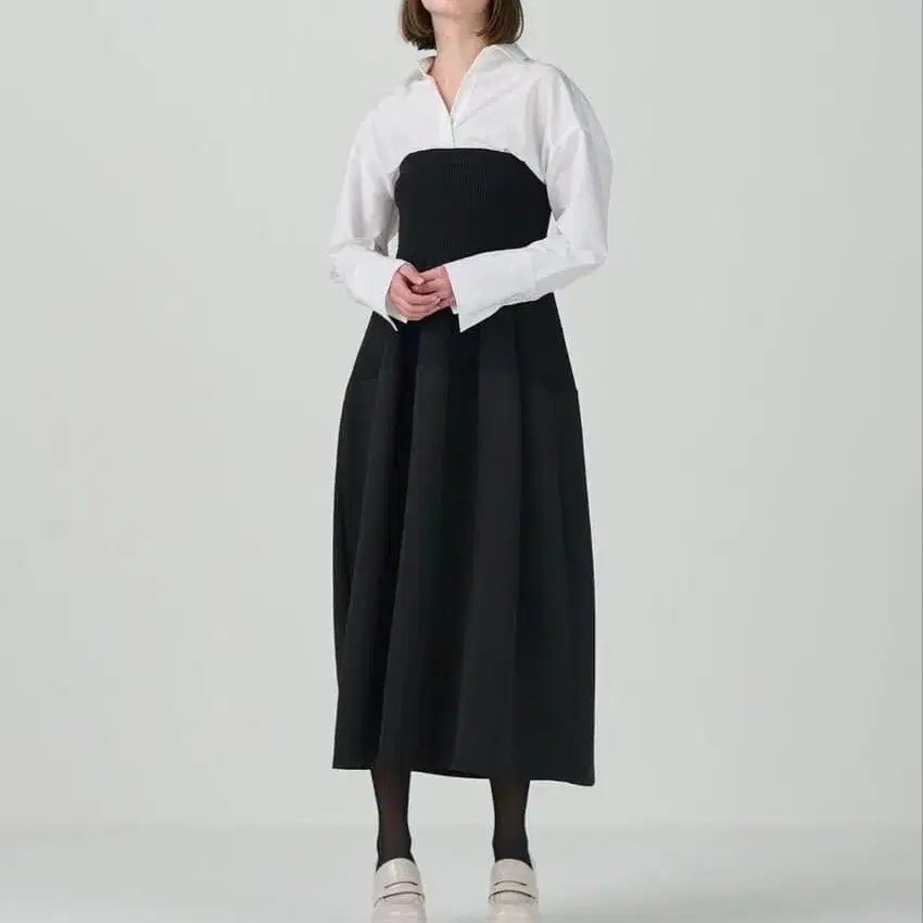 탄탄한 느낌의 니트와 종이상자 저지를 도킹한 베어 원피스입니다.