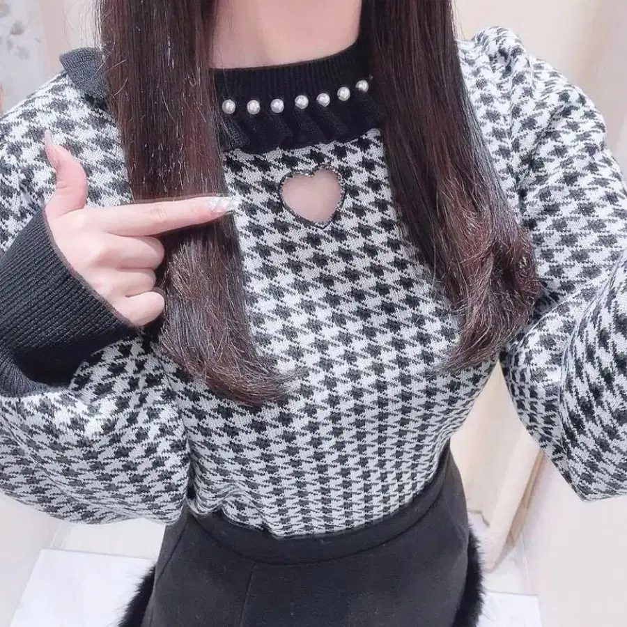 michellmacaron 미셸 마카롱 하트컷 니트탑