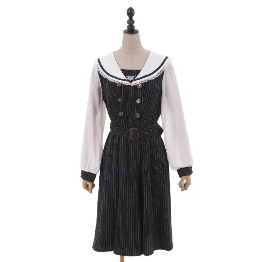 axes femme 세일러 카라 블라우스 & 벨트 스커트 셋업 네이비