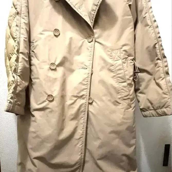 충전솜이 들어간 베이지색 더블 브레스트 롱 코트. - 색상: 베이지 - 디자인: 더블 브레스트 - 소재: 충전솜 - 스타일: 롱 코트 - 특징: 버튼 포함 방문해 주셔서 감사합니다.