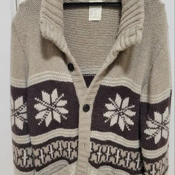 눈꽃 패턴이 특징인 베이지 브라운 가디건. - 브랜드: BACK NUMBER - 사이즈: LARGE - 디자인: 눈꽃 패턴 - 색상: 베이지 브라운 - 스타일: 가디건 방문해 주셔서 감사합니다.