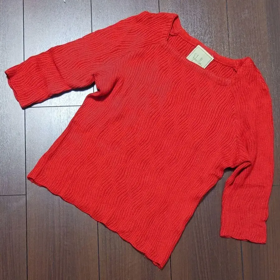 봐주셔서 감사합니다. 시빌라의 빨간색 7부 소매 니트탑입니다. 물결 무늬의 리브 편직이 심플하면서도 눈길을 사로잡습니다. 시빌라의 황금기라고 할 수 있는 90년대 제품이라, 이제는 빈티지 니트입니다. 슬림한 디자인이지만 리브 편직이라 매우 잘 늘어나 착용감이 좋습니다.