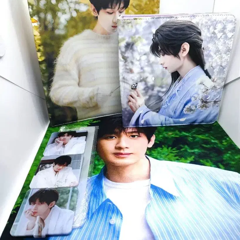 사이즈가 다른 촉감이 좋은 PP 가죽제 수납 파일 (바인더) 2개, 매끈매끈 기모의 쿠션 커버, 존재감 있는 3단 아크릴 스탠드를 모았습니다.