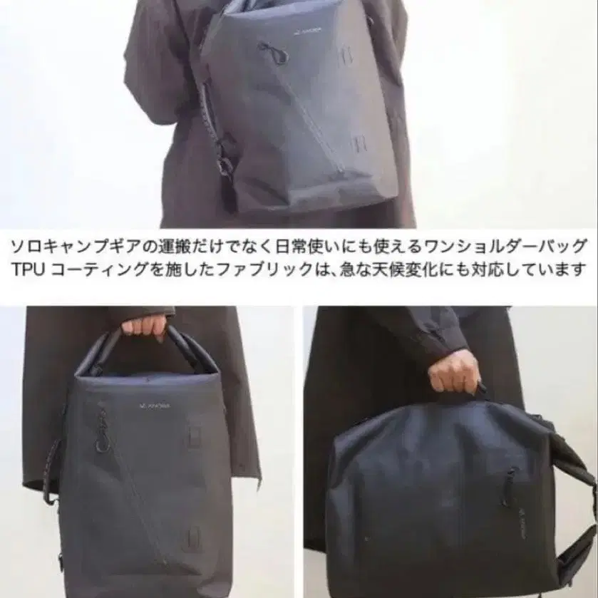 방수 소재의 블랙 원숄더백, 아웃도어에 최적.