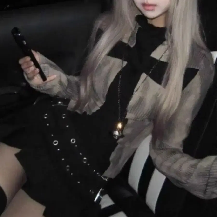 그레이와 블랙 스트라이프가 특징인 크로스 디자인의 긴팔 셔츠. - 색상: 그레이와 블랙 스트라이프 - 디자인: 앞면 크로스 디자인 - 소재: 얇은 원단 - 스타일: 슬림한 실루엣 - 장식: 비즈 장식 스커트 - 소매: 긴팔 - 넥라인: 하이넥 방문해 주셔서 감사합니다.