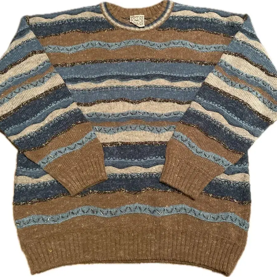 무엇이든 상담해 주세요. 브라운과 블루의 스트라이프 디자인 니트 스웨터.