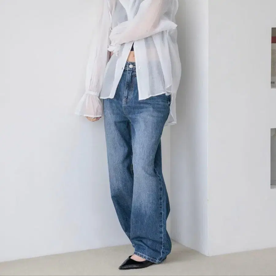 절묘한 와이드 실루엣인데도 깔끔해 보이는 스트레이트 데님.