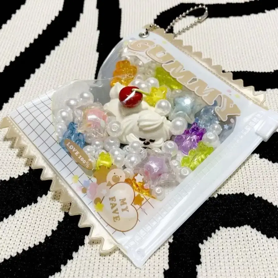 GUMMY라고 프린트된 파우치에 구미 베어 파츠도 넣고, 휘핑 크림 같은 강아지를 채워 넣었습니다 ★
