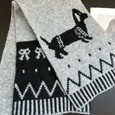 그레이 색상의 강아지 패턴 니트 머플러입니다.