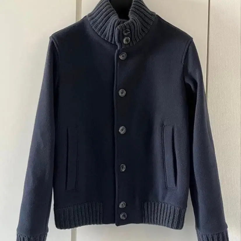 색상은 네이비에 희미하게 그레이를 섞은 듯한 고급스러운 색감입니다. 원단은 멜톤 like한 두께감 있는 원단입니다.
