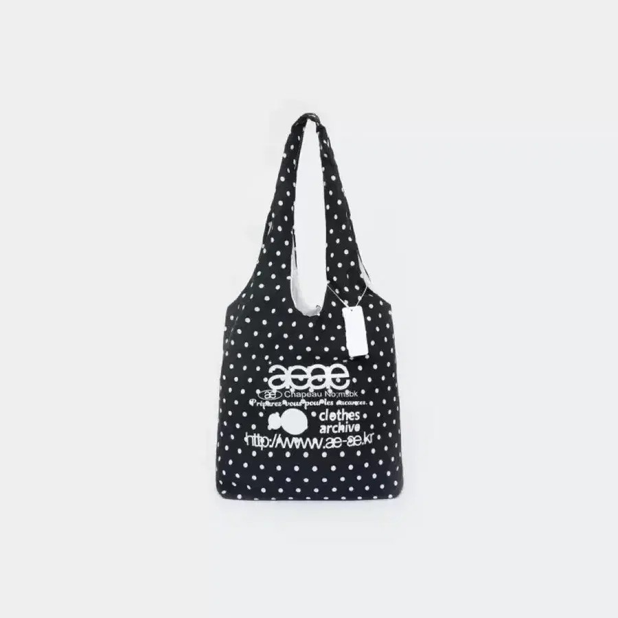 도트 무늬의 블랙 숄더백, 로고 디자인