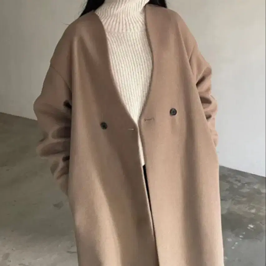 옷깃이 없어 딱딱한 인상을 주지 않습니다. 또한, 머플러나 스톨 등을 둘렀을 때 겹치기 어려운 점도 매력적입니다.