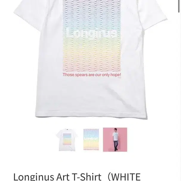 RADIO EVA의 롱기누스 아트 T-Shirt입니다. 화이트 바디에 레인보우 컬러의 롱기누스의 창 아트가 디자인되어 있습니다. 에반게리온의 세계관이 표현된, 팬이라면 놓칠 수 없는 한 벌입니다.