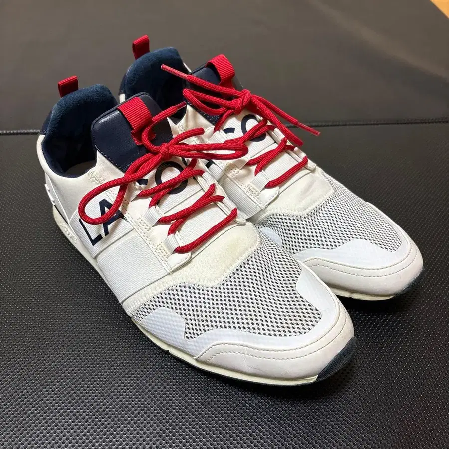 메쉬 소재로 통기성이 좋은 LACOSTE 스니커즈. - 브랜드: LACOSTE - 색상: 화이트/레드/네이비 - 스타일: 스니커즈 - 특징: 메쉬 소재 - 신발끈 색상: 레드 - 측면 디자인: LACOSTE 로고 방문해 주셔서 감사합니다.