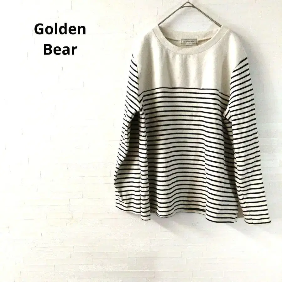 화이트와 스트라이프 디자인이 특징인 Golden Bear의 긴팔 니트.