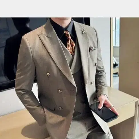 울 혼방 베이지 더블 브레스트 수트, - 색상: 베이지 - 스타일: 더블 브레스트 - 베스트: 포함 - 포켓 치프: 포함 ★ 3종 세트: 상의 + 팬츠 + 베스트 ■ 소재: 폴리에스테르 20240918025 방문해 주셔서 감사합니다.