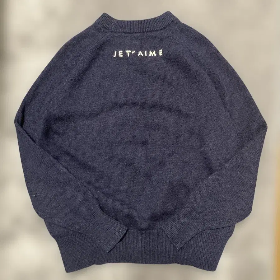 몇 회 사용 컬러 네이비 紺 Deuxieme Classe MUSE 두지엠 클라세 뮤즈 JE T'AIME 니트 풀오버 양모 90%, 캐시미어 10% 앞면은 베이직한 크루넥. 뒷면에 손글씨풍 로고로 심플한 디자인이지만 사랑스러움이 가득합니다. 코듀로이 하의와 함께 매치하여 시크하게, 트레디셔널하게 코디해도 ◯ 매너리즘에 빠지기 쉬운 겨울 코디에 위트를 더해주는 아이템입니다. 구제 의류에 이해가 있는 분만 부탁드립니다. 최대한 작게 포장하여 발송하겠습니다.